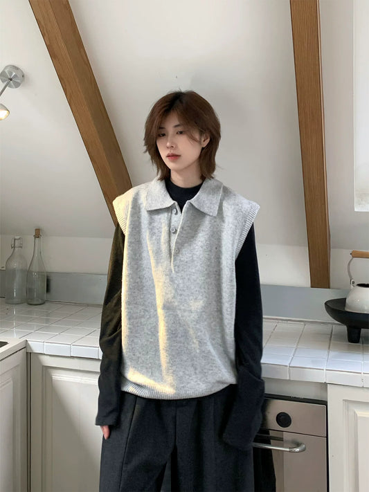 【Oneblue Shop】Vネック ニット ベスト ノースリーブ(3Colors)241595