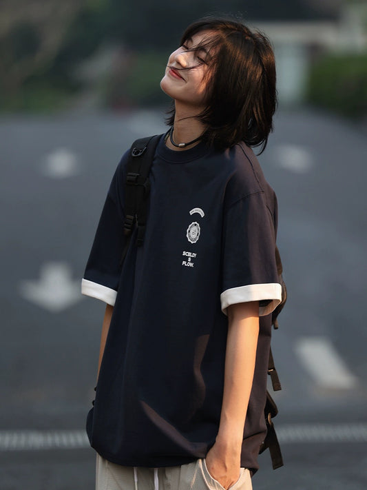 【Oneblue Shop】ラウンドネックゆったりTシャツ -Tshirt LS2405203