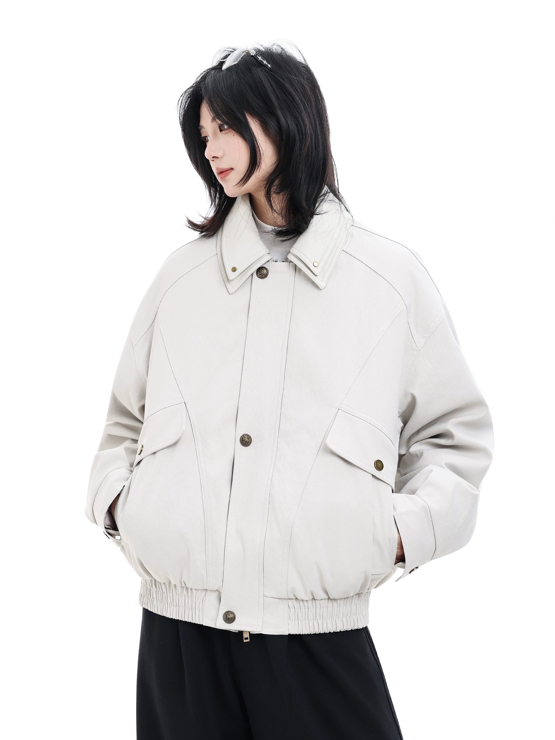 【Oneblue Shop】レザーカラー ワーク パディングブルゾン / デタッチャブル フライトジャケット LS2601082