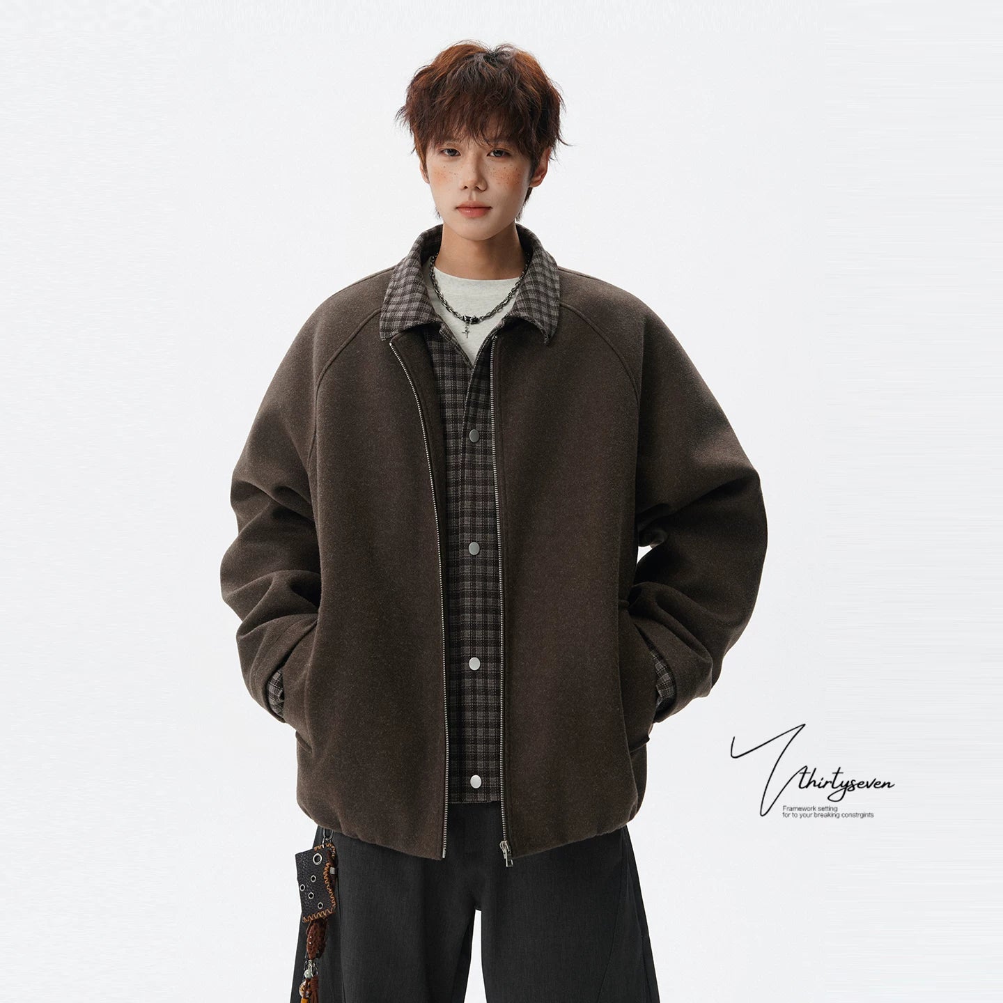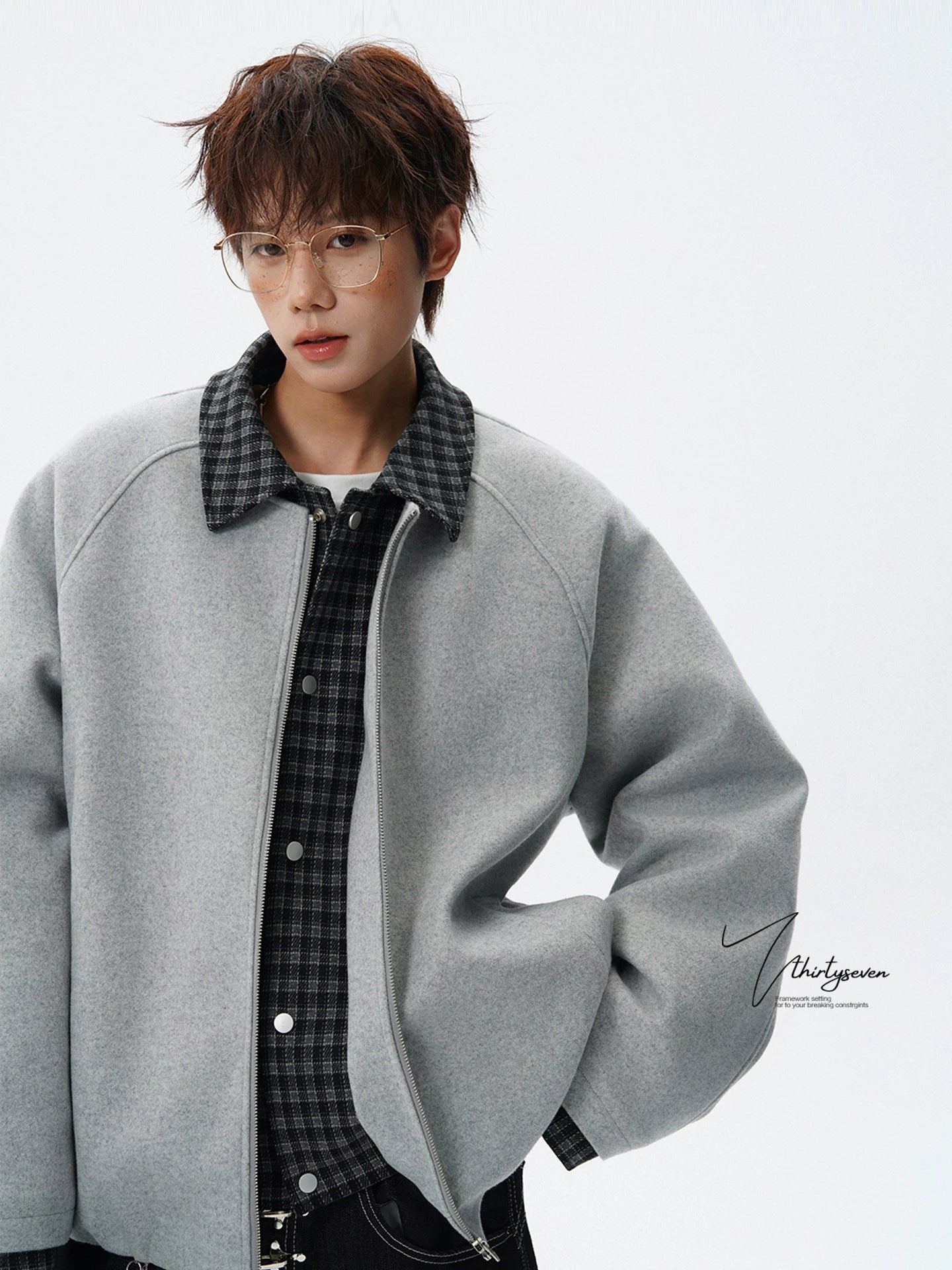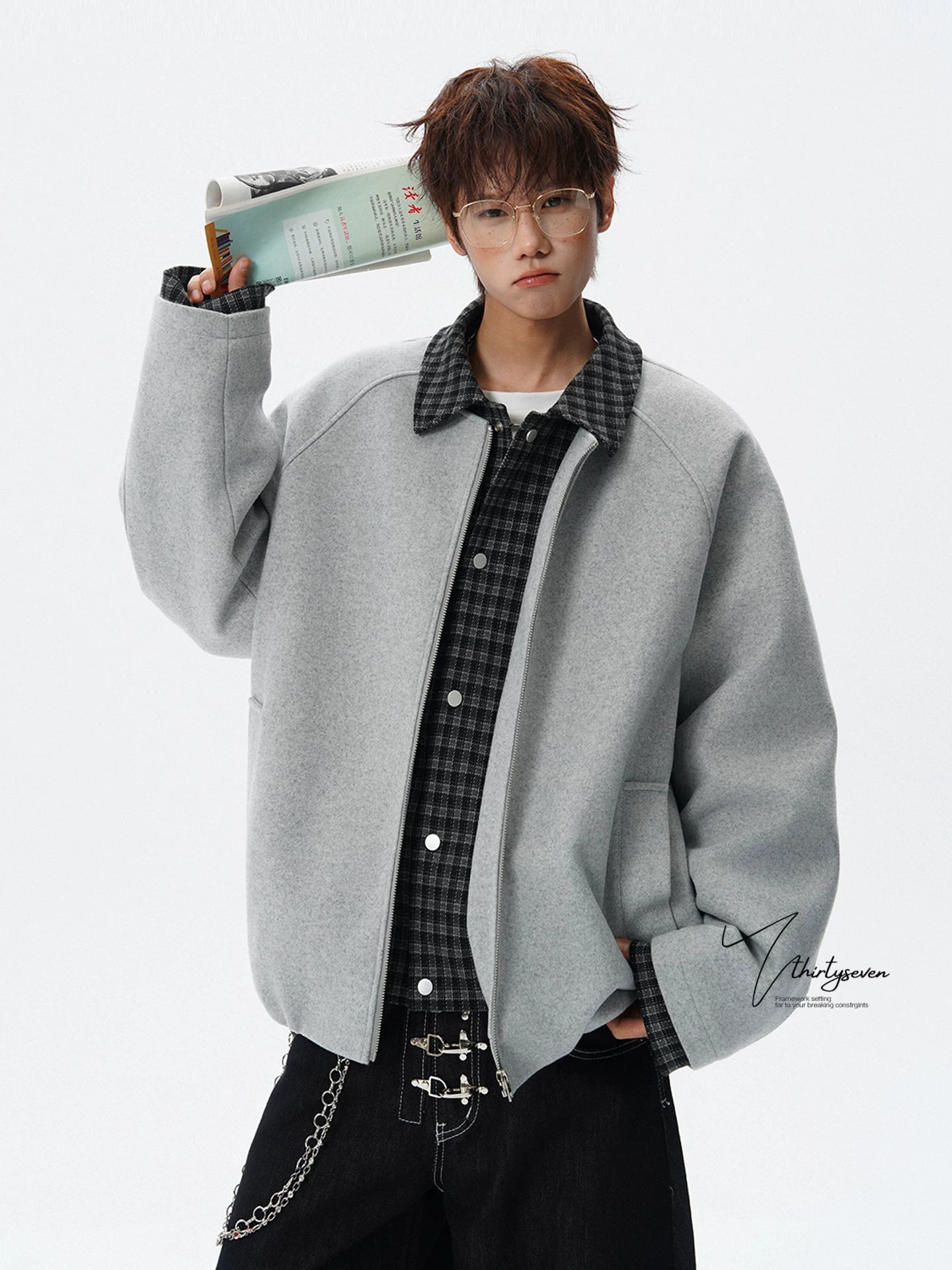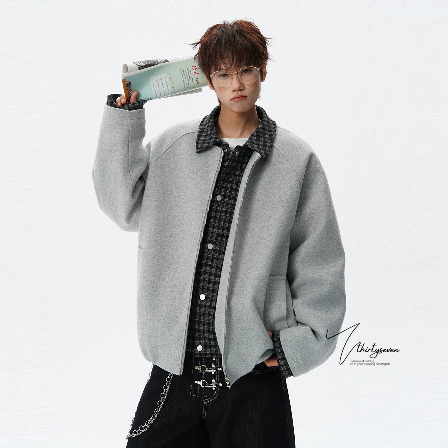 【Oneblue Shop】【2way風】フェイクレイヤード メルトン ウールブルゾン / ビッグシルエット 襟付きコート LS2601091