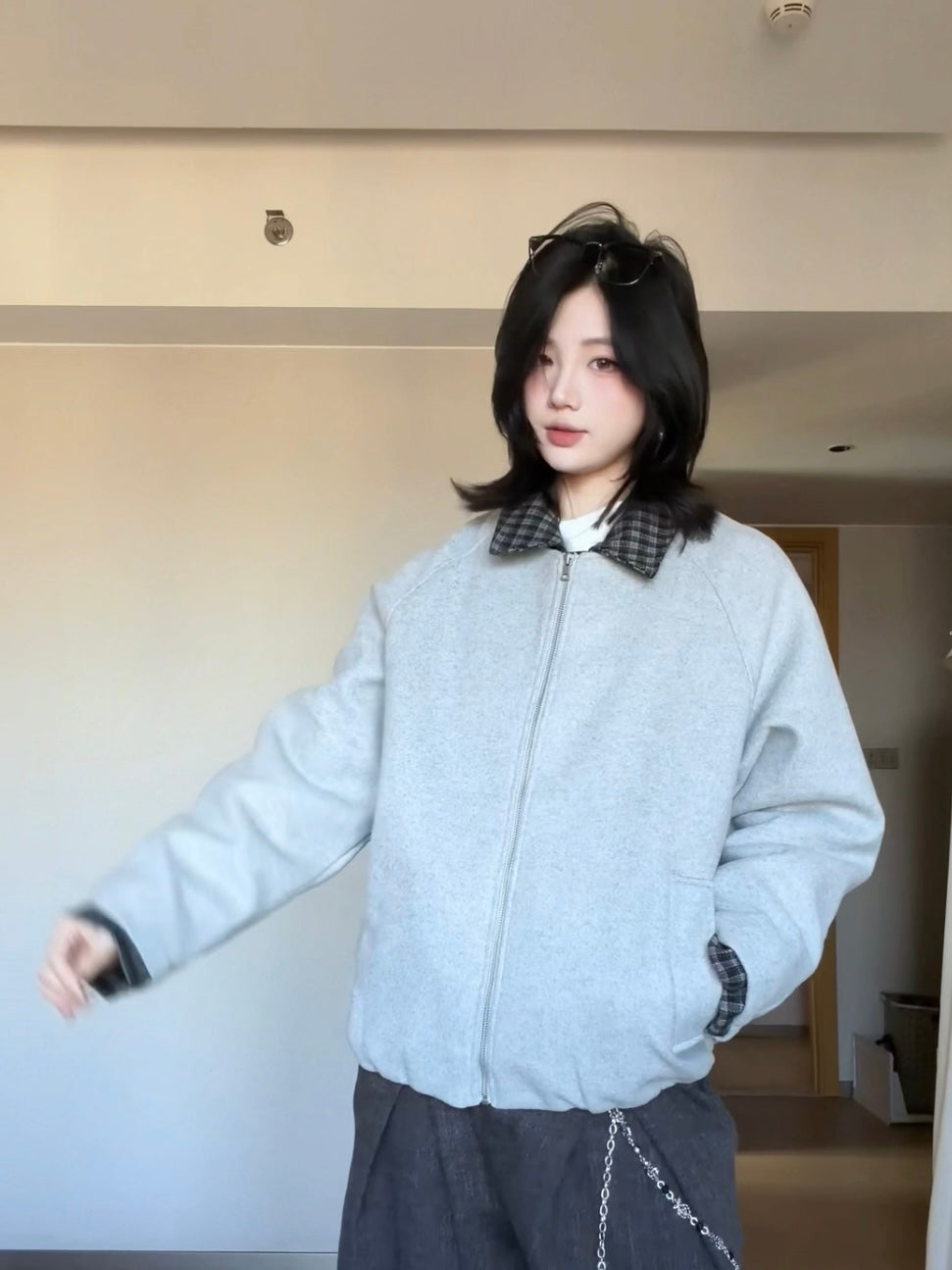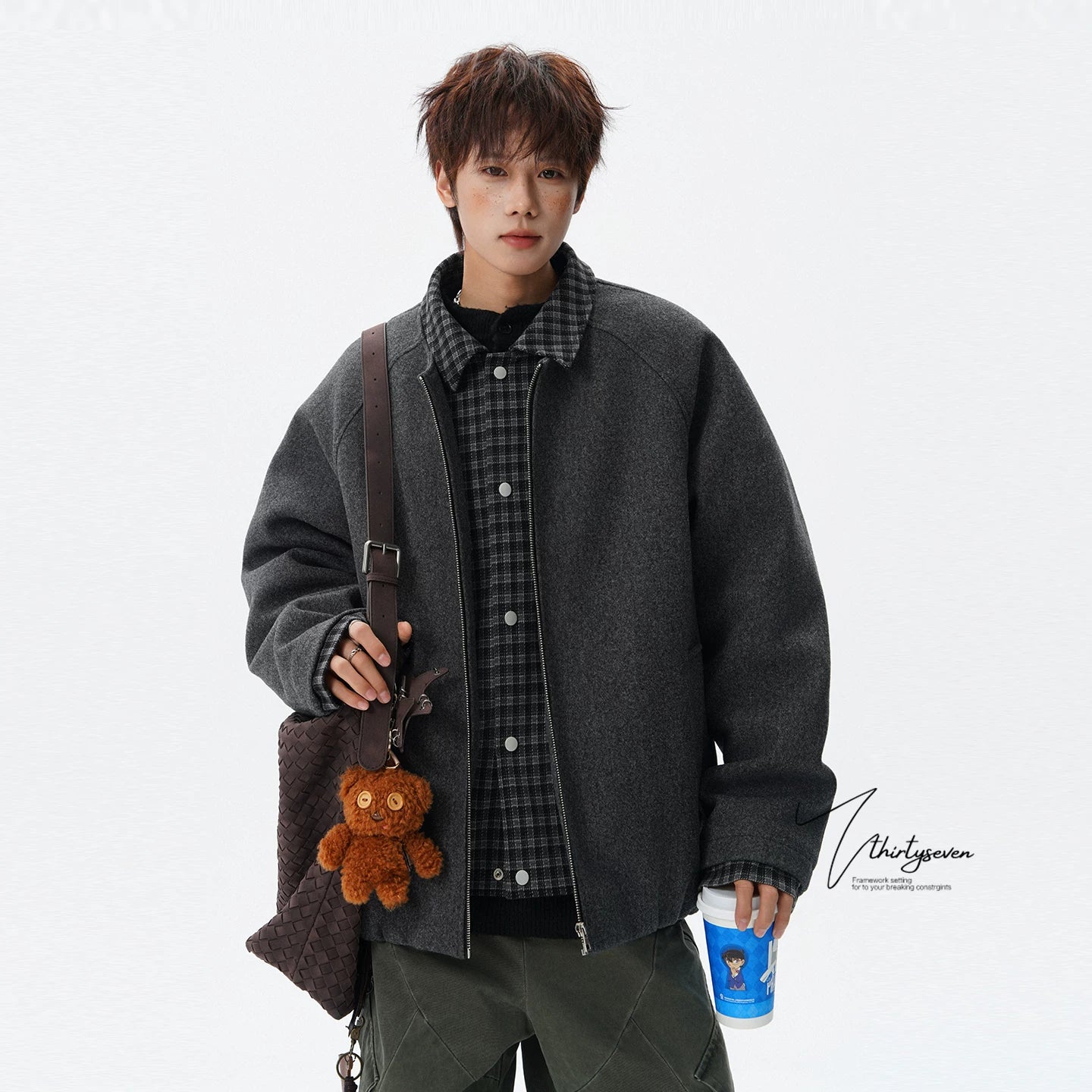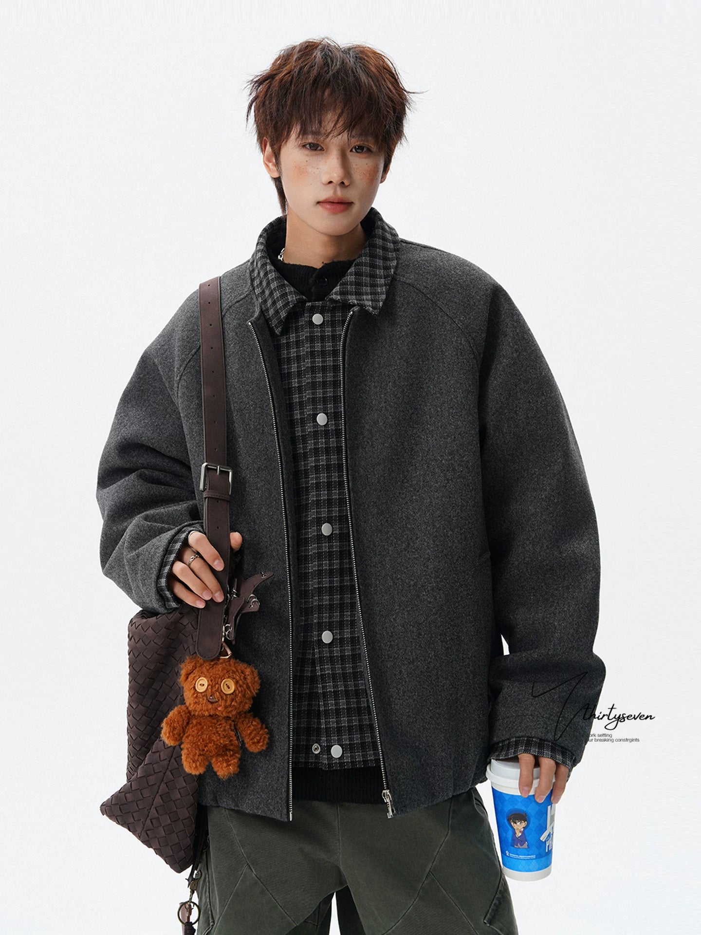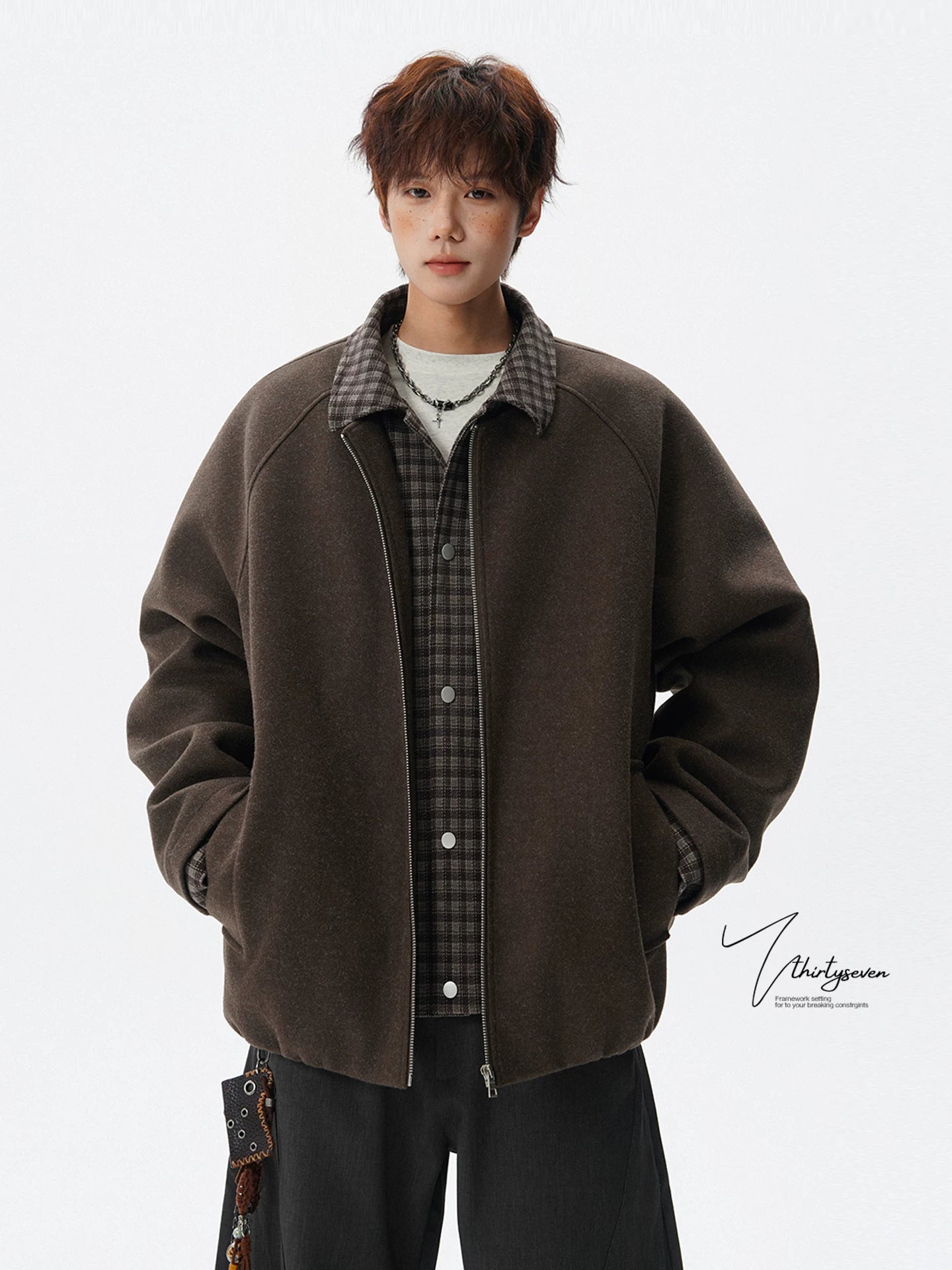 【Oneblue Shop】【2way風】フェイクレイヤード メルトン ウールブルゾン / ビッグシルエット 襟付きコート LS2601091