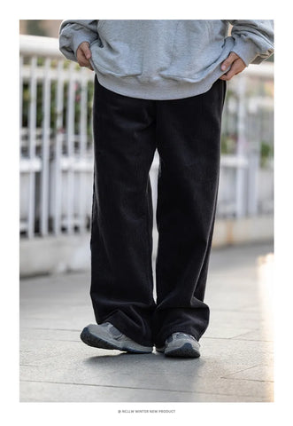 【Oneblue Shop】コーデュロイパンツ 秋冬 ルーズフィット 男女通用 海外トレンド 無地