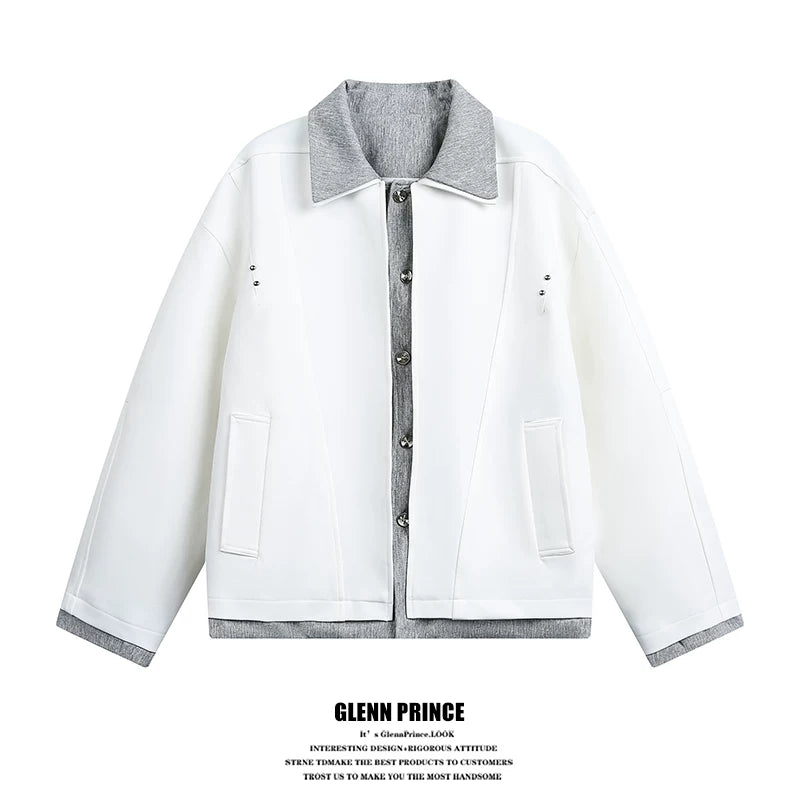 襟元と裾から覗くグレーの別布が、シンプルながらも洗練された「重ね着感」を演出するトレンドのジャケットです。ゆったりとしたオーバーサイズシルエットで、ストリートからカジュアルまで幅広いコーディネートにマッチします。