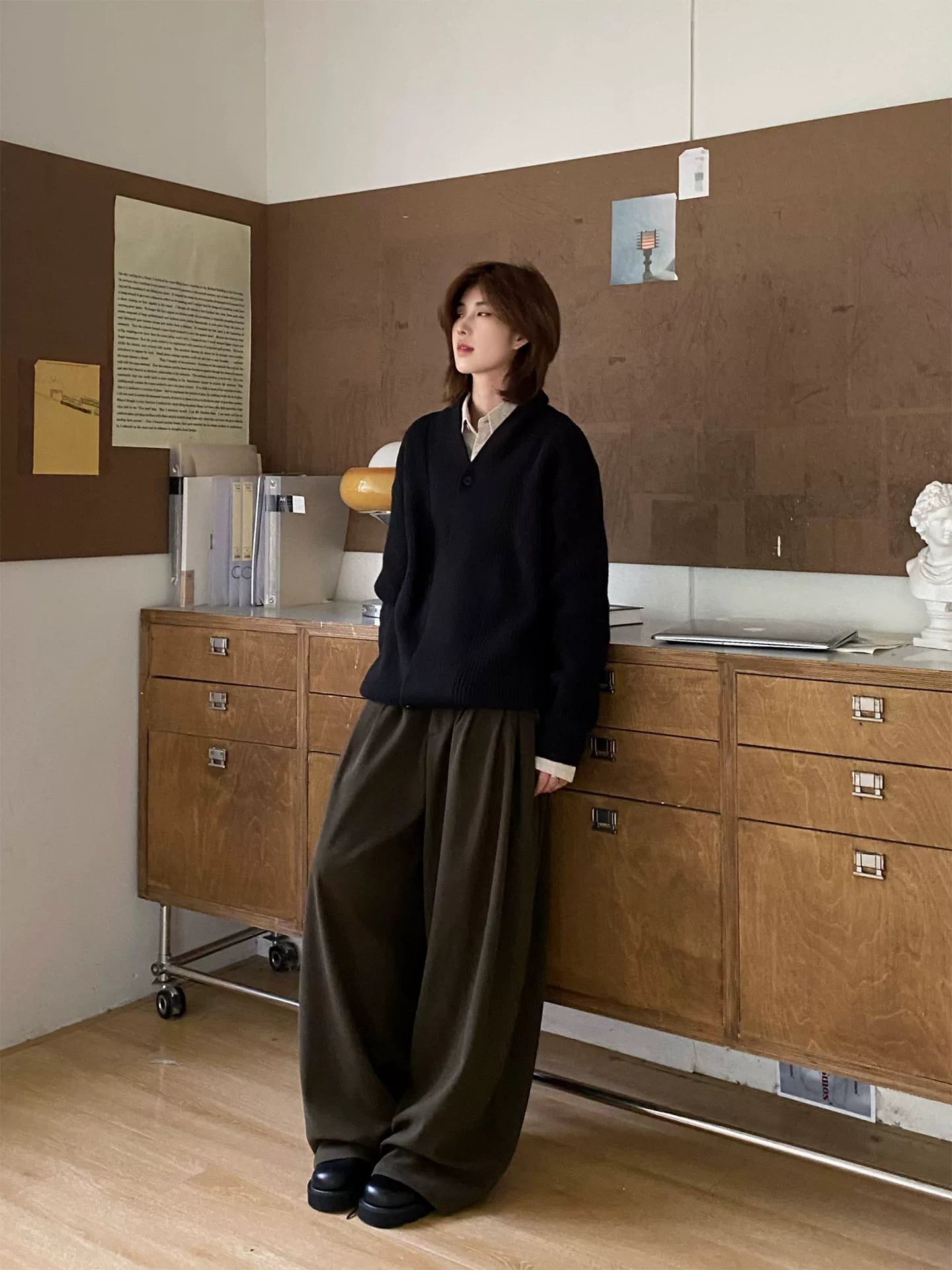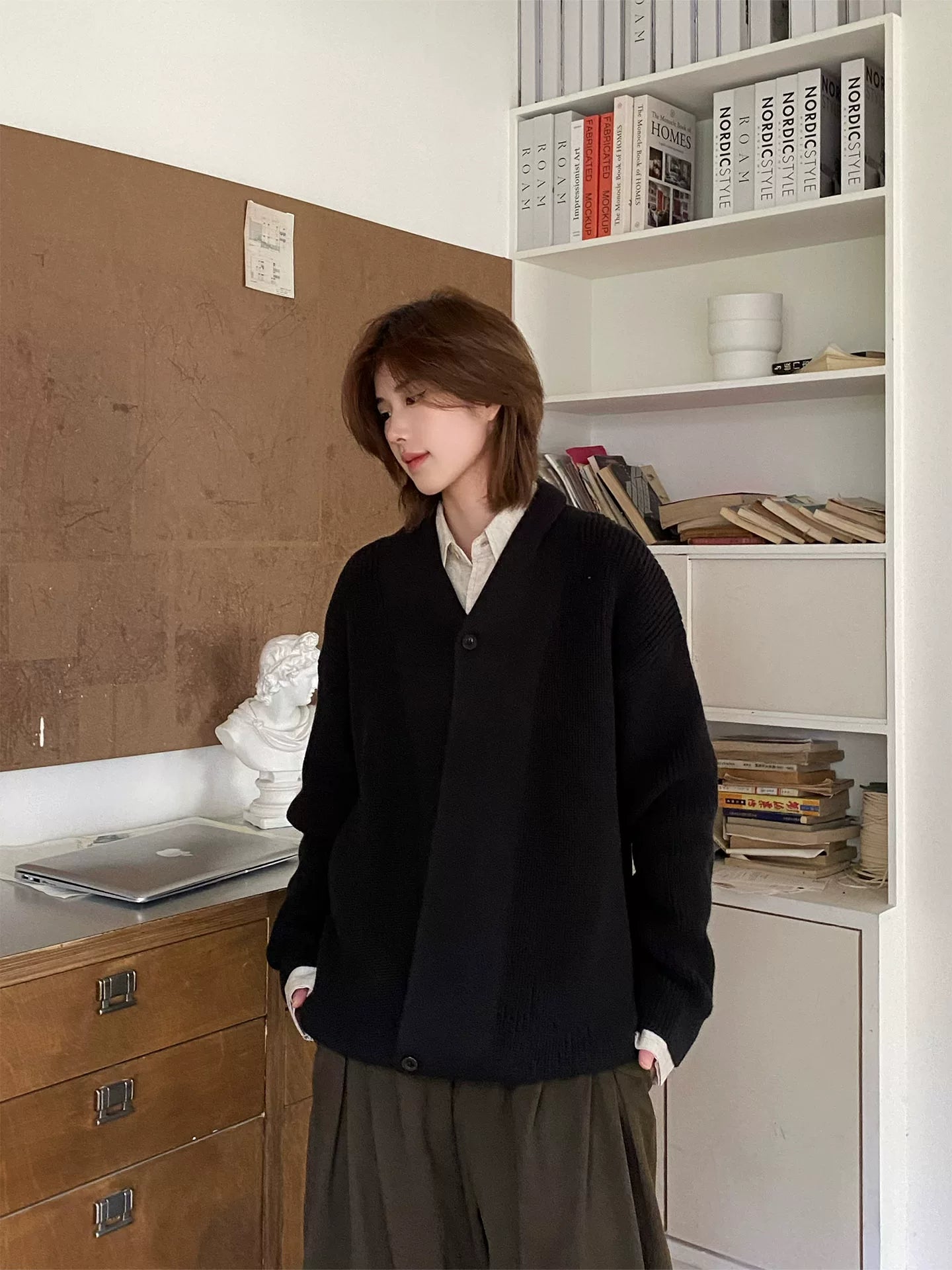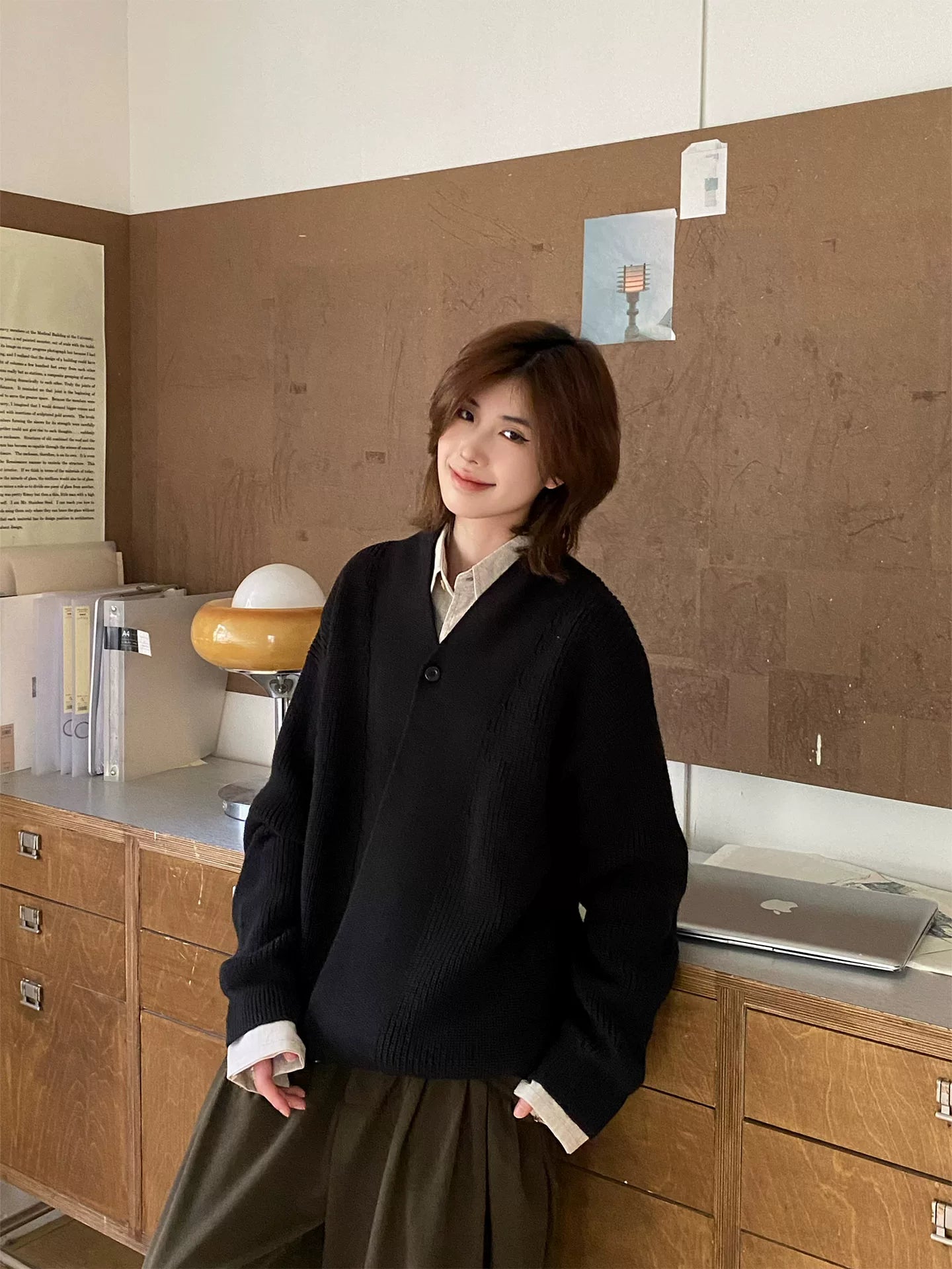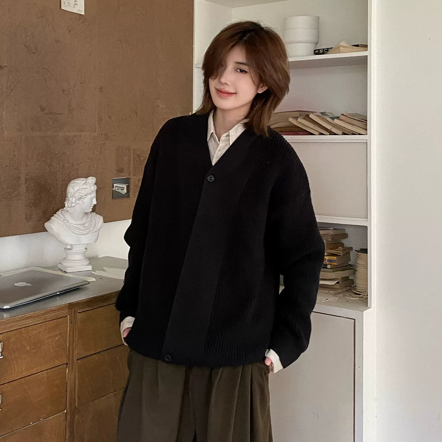【Oneblue shop】ショールカラー オーバーサイズ ニットカーディガン / ビッグシルエット ルーズカーデ LS2601071
